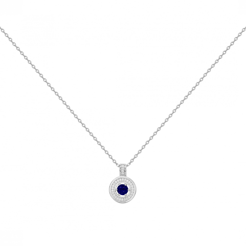 Le Collier de la marque Tiffany Création est en argent. Le pendentif est muni d'une pierre bleue entourée d'oxyde de zirconium.