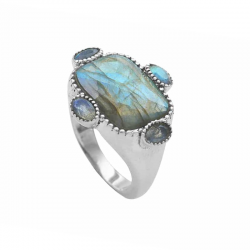 La Bague Frida de la marque Clio Blue dispose d'un anneau en argent ornementé d'une pierre scintillante au design imposant et minutieusement taillé.