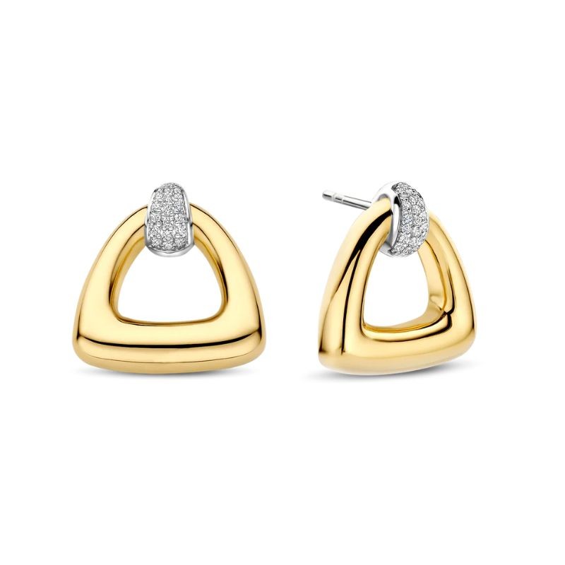 Boucles d’oreilles Ti Sento 78034ZY en argent 925 plaqué or jaune et zircons blancs. Élégance moderne et éclat raffiné. Livraison rapide et gratuite chez Tiffany Création.