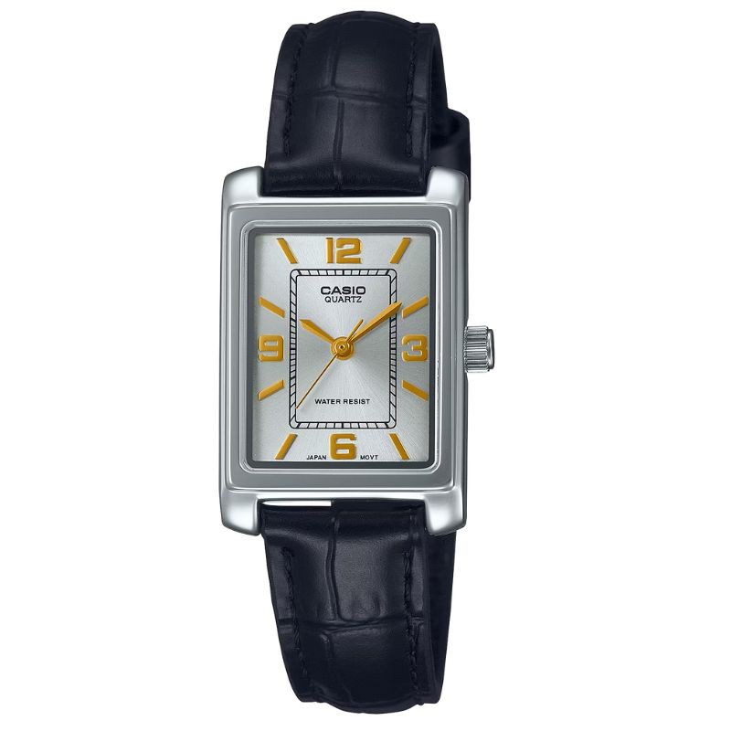 La Casio LTP-1234PL-7A2EF incarne l’élégance rétro avec son design doré, son bracelet en cuir et son affichage analogique à trois aiguilles. Compacte, précise et raffinée.