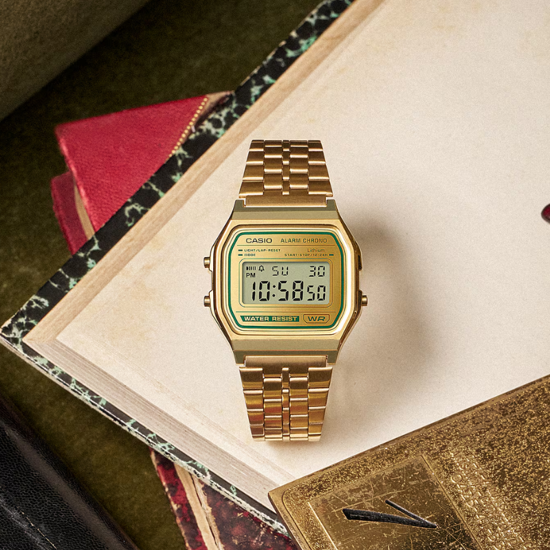 Montre Casio A158WEGV-9AEF – Vintage doré et vert au style rétro chic | Tiffany Création