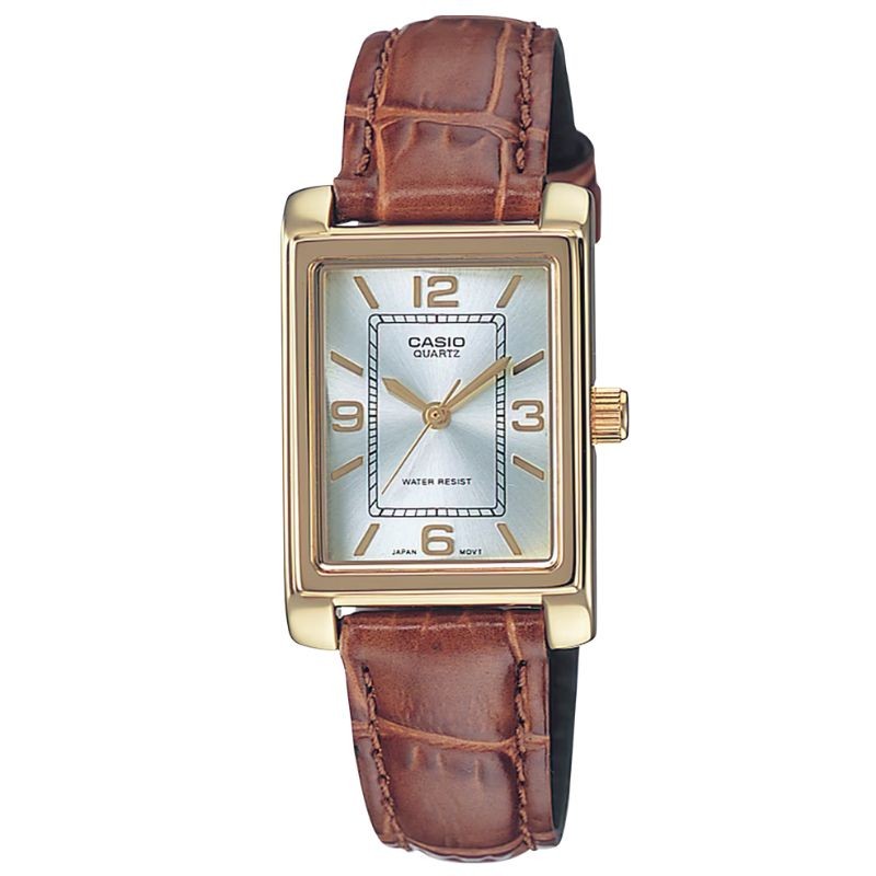 Montre Casio Vintage femme réf. LTP-1234PGL-7AEG, cuir marron, cadran doré argenté. Élégance rétro à 49,99€ chez Tiffany Création